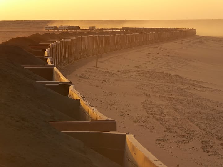 Riding the iron ore train in Mauritania at sunrise.